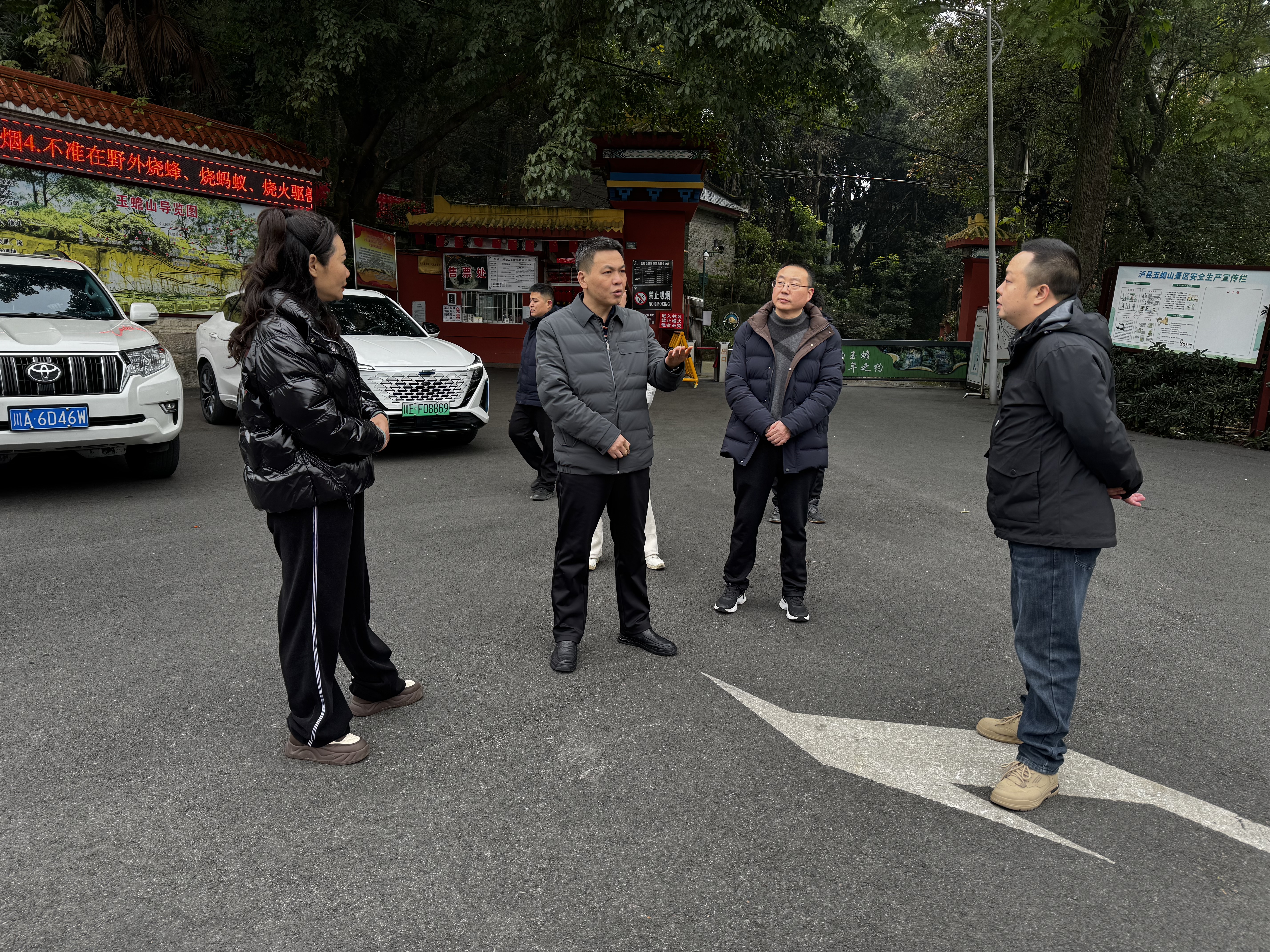 1月6日下午,縣委常委、副縣長李國浩率隊(duì)到玉蟾山景區(qū)檢查安全工作及春節(jié)氛圍布置工作開展情況,強(qiáng)調(diào)要做好森林防火工作,加強(qiáng)安全管理,對(duì)臨坡、臨崖等重點(diǎn)路段要加強(qiáng)隱患排查、巡查,增設(shè)安全提醒標(biāo)識(shí)標(biāo)牌,加派值守人員,做到人防、物防同步,同時(shí)要積極思考謀劃摩崖造像等重點(diǎn)文物的保護(hù)工作??h文化廣電旅游局、龍城文旅公司參加。